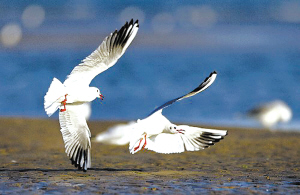 11月3日,迁徙途中的候鸟在河北秦皇岛沿海湿地嬉戏。进入9月份以来,秦皇岛沿海湿地迎来近百种、数十万只向南迁徙的候鸟,增添了一道迷人的风景。 新华社发 刘学忠 摄