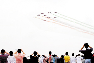 11月4日,印度空军“阳光”表演队在珠海航展上进行表演。当日,第七届中国国际航空航天博览会在珠海开幕,各种飞行表演精彩不断。