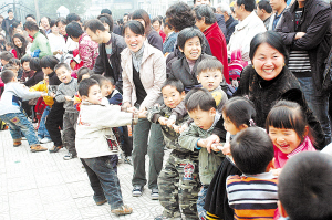 4日,市区一家幼儿园举办了一场别开生面的“和谐家园”运动会,在一片欢乐、温馨的气氛中,增进亲子情、师生情。 晚报记者 朱海龙 摄