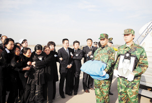 11月5日,在石家庄正定机场,在苏丹遭绑架遇害的5名中国工人的骨灰被护送下飞机。当日下午,在苏丹遭绑架遇害的5名中国工人的骨灰由中方包机运抵石家庄。获救的4名工人、中国政府处理在苏丹被绑架工人善后事宜前方工作组和苏丹政府工作组成员同机抵达。