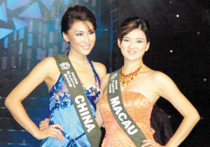 11月9日,在菲律宾北部邦板牙省的天使城,中国小姐周颖坤和中国澳门小姐钱维娜在地球小姐决赛中亮相。当晚,2008年地球小姐决赛在天使城举行,来自85个国家和地区的佳丽参加了本场比赛,菲律宾小姐卡拉·亨利最终夺冠。 新华社记者 刘华 摄