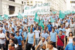 11月10日,阿根廷的劳工组织成员在首都布宜诺斯艾利斯的劳工部大楼前举行示威活动,要求政府采取措施,避免出现企业大规模倒闭和裁员。席卷全球的金融危机对阿根廷经济的冲击日益显现,汽车等制造业出现了大规模裁员和失业现象。 新华社/美洲通讯社