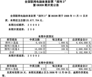 全国体育采票排列3开奖公告