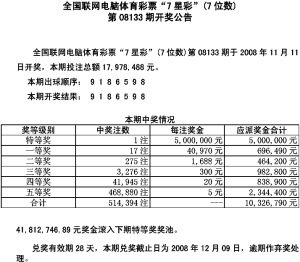 体彩7星彩开奖公告