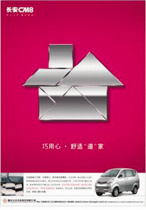 这则长安的广告巧妙地运用了“七巧板”的构造特点,拼出了一把伞、一个骆驼、一个童车,还有一间房子,通过节能、照顾、时尚、舒适4个理念阐述了车型的亮点。七巧板在变化,从小小的一把伞,变换成最终的一间房子,同时车的用途也在由小及大地变换着,这正好凸显出了长安车型能够随着时间的推移渐渐成为车主重要的伙伴,从帮手的地位演变成能够托付终生的挚友。 (瑞丽)