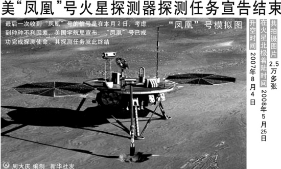 美凤凰号火星探测器探测任务宣告结束