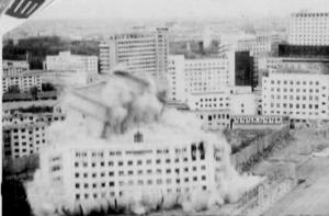 2005年5月17日凌晨,一声闷响,刚建成4年的呼市公安局11层指挥大楼被炸掉了,目的是给“西北第一高楼”腾地方。这次定向爆破也被称作“西北第一爆”。
