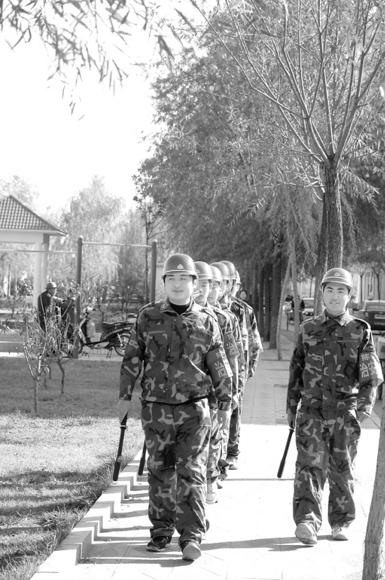 昨天上午,统一着装的8名治安巡逻队员在川汇区陈州办事处辖区内徒步巡逻。据介绍,这些队员每天24小时不间断巡逻,随时发现和处置治安问题,积极为群众提供帮助。晚报记者 朱海龙 摄