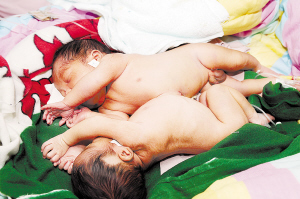 大宝小宝的爸爸赵卫华是项城市花园办事处赵营行政村人。据他介绍,他结婚4年后,快30岁的妻子才有身孕,一家人都很高兴。后来去医院做B超时,发现妻子怀的是双胞胎,这更让一家人非常期盼。11月3日下午,妻子在项城市人民医院剖宫生产,令医生意想不到的是,当他们准备抱出第一个婴儿时,却发现两个婴儿是紧紧连在一起的!医生只好小心翼翼地将两个婴儿同时抱出。