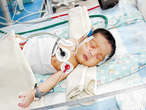 当发现是一对连体婴儿时,赵卫华一家人由喜转悲。在医院和朋友的建议下,他们带着孩子于5日入住郑州市儿童医院。经检查,小哥俩属于胸腹型连体,胸骨下端相连,肝脏部分相连。由于连体婴儿中小宝的先天性心脏病病情严重,如果将孩子养护大再做分离手术,将会影响手术效果。经过专家论证并经家长同意,分离手术提前实施。
