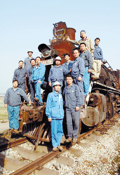 新钢公司曾经的蒸汽机车司机和他们的“老伙计”合影留念。 江西新余因钢立市,得名“钢城”。新余钢铁有限责任公司建厂至今先后使用了三代不同型号的蒸汽机车。近年来,随着新型内燃机车的不断引进,该厂最后一批蒸汽机车也全部退役,完成了它们的历史使命。 新华社发 赵春亮 摄