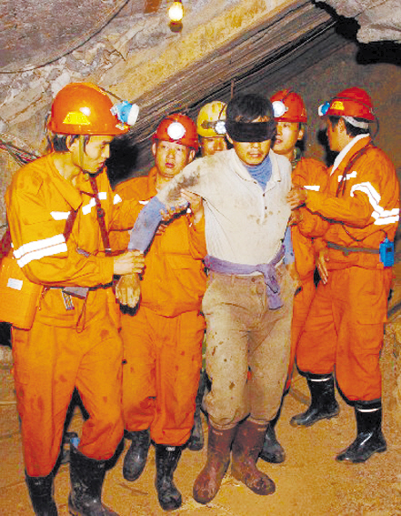 11月24日,被困矿工卢和祥在救援人员的搀扶下走出矿井。 当日凌晨4时56分,经过救援队伍的日夜奋战,江西龙南县夹湖乡钨矿冒顶事故的4名矿工在被困80小时后成功获救,经现场医护人员初步检查,4人身体状况良好、情绪稳定。目前,4名矿工已被转送龙南县人民医院作进一步检查、医护。 新华社发 朱文标 摄