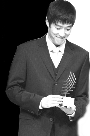 晶莹璀璨的2006年最佳表现奖奖杯握在手,站在国际田联年度盛典的舞台上,迟到的颁奖让刘翔百感交集。“没想到国际田联会在两年后还记得把奖杯颁给我,更没想到颁奖是在今年盛典上举行。这对我来说是个莫大的荣誉”。