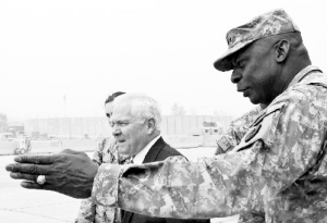 图为9月15日,盖茨自2006年年底就任国防部长以来第八次访问伊拉克。