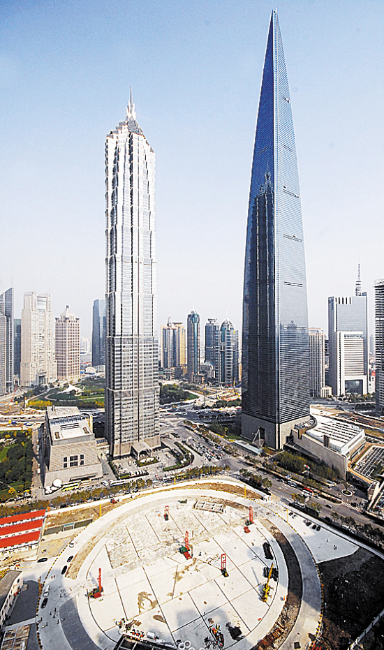 位于上海环球金融中心和金茂大厦旁的上海中心工地(圆形地基)准备就绪,即将正式开工(11月27日摄)。当日,上海市政府在新闻发布会上宣布,上海中心大厦项目将于11月29日正式开工,预计2014年竣工。上海中心大厦设计总高度达632米,建成后将与金茂大厦、上海环球金融中心形成“品”字型超高层建筑群,成为上海“新地标”。 新华社发