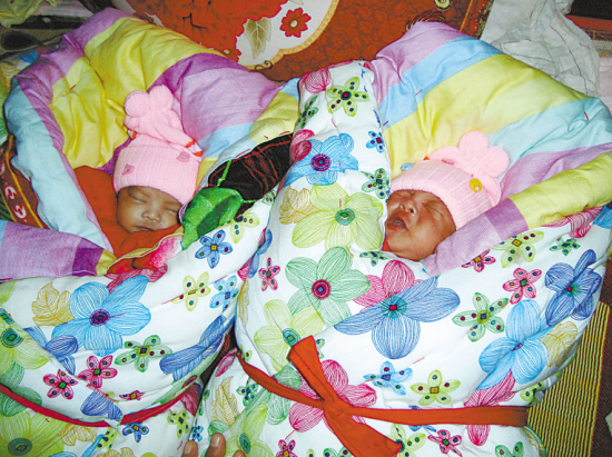 27日下午,躺在自家床上的大宝小宝。当天,爸爸带着小哥俩从郑州回到家中。据大宝小宝的奶奶讲,这是他们出生后第一次回家,目前两个孩子能吃能睡。据了解,半年过后,大宝小宝还需到郑州市儿童医院进行复查。 晚报记者 张猛 摄