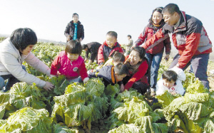 济南一些市民来到田间选购大白菜(11月29日摄)。山东平阴县两万亩大白菜因市场供过于求,销路不畅,批发价仅为每公斤0.12元左右。为帮助菜农解决销路问题,济南市众多单位、个人纷纷伸出援手,来到田间或超市购买爱心大白菜。