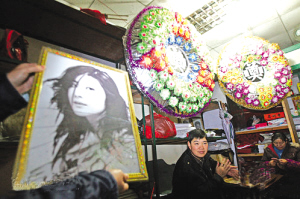 重庆商报记者日前在重庆某治丧中心看到,香港明星陈慧琳、台湾明星古巨基、张信哲等的黑白照片,被装裱成遗像广告,长期用来招揽生意。