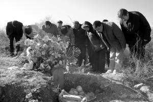 哭声回荡,沁阳市常平乡窑头村的村民们,也闻讯赶到单成德的墓地,大家在诉说日军惨无人道罪行的同时,自发地默哀3分钟,并对着单成德和他战友的墓碑深深地三鞠躬。