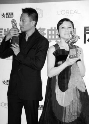 虽然已经是拿过柏林、威尼斯和奥斯卡奖的大导演,在得知自己将与林青霞同台颁奖后的李安也兴奋得像个小影迷,不但在红毯上大呼幸运,在颁奖现场也不忘幽默一把,“能和青霞一起颁奖,说明我真的熬出头了。”久未露面的林青霞一头短发,显得清爽精神,他俩一同将“年度台湾杰出电影奖”和“年度台湾杰出电影工作者”颁给了《海角七号》和它的导演魏德圣。