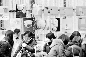 12月6日,人们在一高校设计学院创意产品概念展展位前参观。