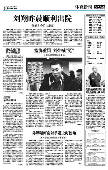 刘翔昨晨顺利出院