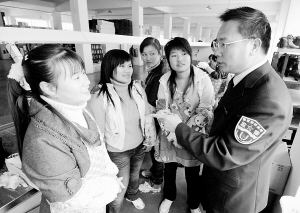 12月8日,浙江省温岭市城北街道劳动保障所所长狄绍根(右)在向企业职工了解情况。浙江省人民政府近日采取省市政府层层签订“军令状”、确立五项应急机制、筹集欠薪应急周转金等多项措施,确保企业职工能够按时足额领到工资。