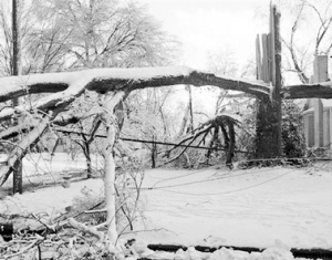一些地方树枝上结满了冰。一些树因难以承受冰的重量而倒下,压断本已结冰的电线。消防部门接到报告说,有些变压器爆炸,电线、电线杆和树木砸在房屋上。消防人员已经赶往现场处理。