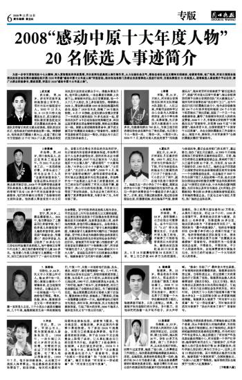 2008“感动中原十大年度人物”
