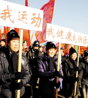 12月15日,参与万人徒步走活动的市民在启动仪式上。当日,长春市启动“健康长春——全民健身工程”。此工程包括22项品牌赛事活动和7项分主题活动,旨在增强市民科学健身意识,提高群众身体素质。