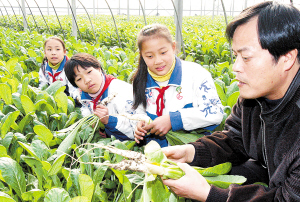 12月16日,虎丘第二小学的学生们在听园艺师介绍冬季种植的暖棚萝卜。当日,苏州市金阊未成年人教育实践基地蔬菜乐园正式开放,迎来首批小游客。蔬菜乐园占地135亩,分为标本展示区、实践体验区和果蔬采摘区等区域。 新华社发