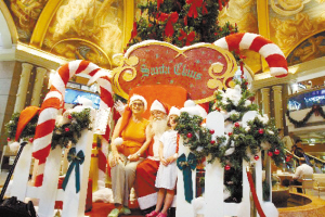 12月17日,在阿根廷首都布宜诺斯艾利斯市中心的一家大型百货商场,商家聘请的“圣诞老人”同顾客合影。每年12月份通常是圣诞节销售旺季,但受金融危机影响,阿根廷的居民消费降温。为促进销售,阿根廷商家采取了各种方法进行节日促销活动。