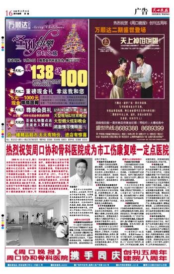 热烈祝贺周口协和骨科医院成为市工伤康复唯一定点医院