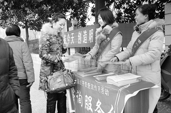 12月23日上午,我市拉开第二次全国经济普查宣传月活动启动大幕,普查人员开始向市民发放宣传单。据了解,我市第二次全国经济普查将于2009年1月1日零点开始。 晚报记者 李瑞才/文 朱鸿/图