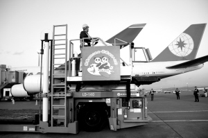 长荣航空公司工作人员介绍说,“团团”、“圆圆”一路上表现很好,没有因不适应陌生环境而恐慌。大约在专机降落前30分钟,饲养员为两个小家伙进行了最后一次喂食。