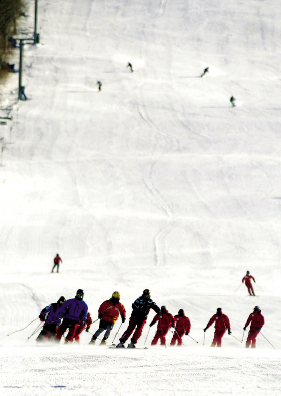 12月23日,专业滑雪队在冰雪节开幕式上进行滑雪表演。当日,第十四届中国吉林国际雾凇冰雪节在吉林市北大湖开幕。本届雾凇冰雪节以“爱国、爱城、爱家”为主题,期间将举行鼓乐秧歌舞蹈大巡游、冬季龙舟表演、冰灯游园会开园仪式、大型焰火晚会、河灯祈福等活动。 新华社发