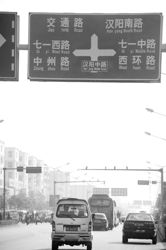 昨天,有读者来电反映,市区汉阳中路上,一块面朝北的指路牌上应该是七一中路的方向写成了“七一西路”,而七一西路的方向写成了“七一中路”,这一颠倒,让不少外地司机走了许多冤枉路。希望有关部门尽快改一改。 晚报记者 朱海龙 摄