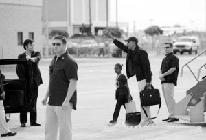 12月20日,在美国夏威夷的火奴鲁鲁,美国当选总统奥巴马(右二)与女儿走下飞机。