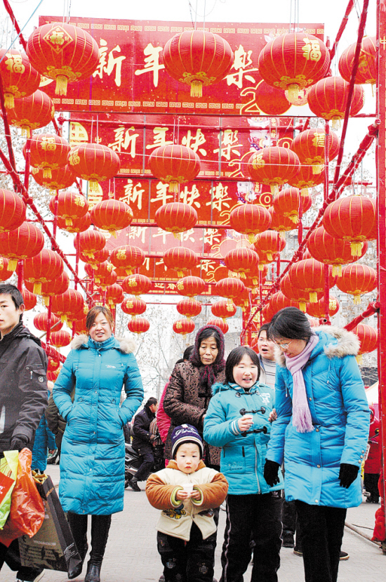 昨天是元旦小长假的最后一天,也是农历腊八,许多商家挂起喜庆的红灯笼,年的味道越来越浓。晚报记者 朱海龙 摄