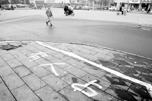 昨天,在市区交通路和文明路交叉口东南角,有人在人行道上用白油漆画上一根线,并写上“有人占”几个字。附近居民说,每年春节前后,这里的人行道就成了生意人眼里的“黄金地段”,早早就有人抢占,这种画线圈地占道经营的行为实在影响市容。