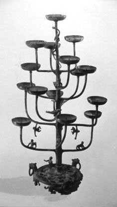 红色蜡烛,原是专供过年或过节时上香用的,为了美观,大蜡烛上有的画龙凤,有的写对联,上香时插入像塔形的蜡台上。