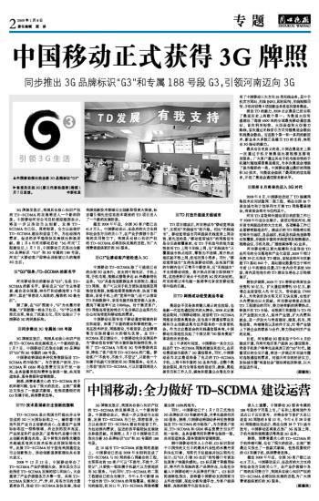 中国移动正式获得3G牌照