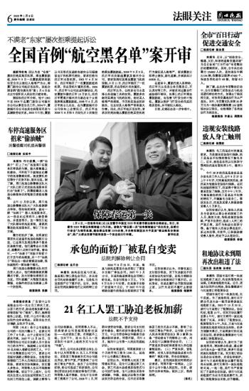全国首例“航空黑名单”案开审