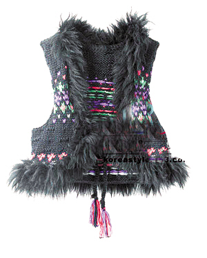 带有毛边的马甲,流苏吊坠的修饰更显活泼。