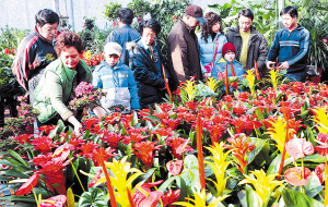 1月11日,市民在选购鲜花。天津市西青曹庄花卉市场目前已经进入春节销售旺季,供应市场的盆养鲜花和景观造型植物品种达千余个,客流量日均3万余人,日销售量约1.5万盆。 新华社记者 刘海峰 摄