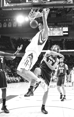 火箭此役少了麦迪和阿尔斯泰两名主将,上半场力拼后体力消耗很大。火箭中锋姚明几乎打出“双20”的大号两双,而老将穆托姆博的复出也令火箭打出了激情,无奈最后功亏一篑。