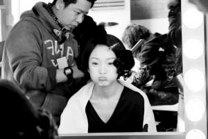 李冰冰是第一位出现在摄影棚的试妆明星。第二天,周迅也来到了化妆间,化妆过程中一直都和工作人员谈笑风生,兴致一来更是扮起鬼脸逗人开心。(王同)