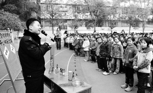当天,湖北省宜昌市万寿桥小学在放寒假前开展“民警叔叔教我放鞭炮”活动,全校师生共同学习有关鞭炮燃放的安全知识,确保安全快乐过佳节。新华社发