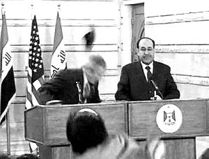 2008年,布什在伊拉克遭遇记者扔出的鞋子。