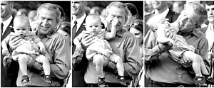 在白宫的一次夏季野餐会上,布什在逗玩一名国会议员的儿子。